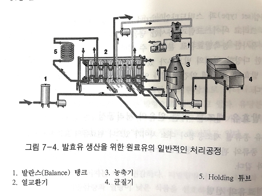 *발효유 제조 공정 : 원료유 선별>표준화>살균>균질>스타터접종>배양>냉각